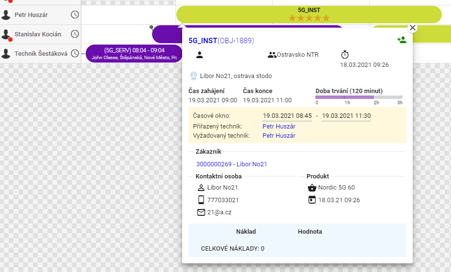 Slot detail in Gantt context: